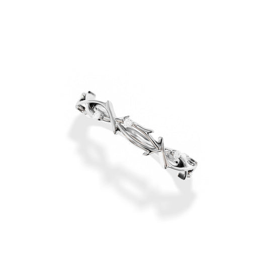 0.042 CT Round Shaped Moissanite Twig Style Wedding Band