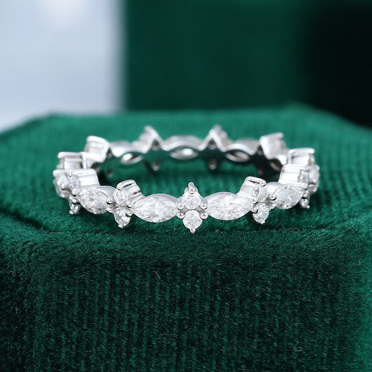 0.027 CT Marquise & Round Moissanite Cluster Wedding Band