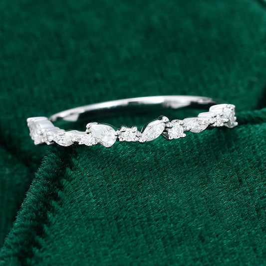 0.027 CT Round, Pear & Marquise Moissanite Cluster Wedding Band
