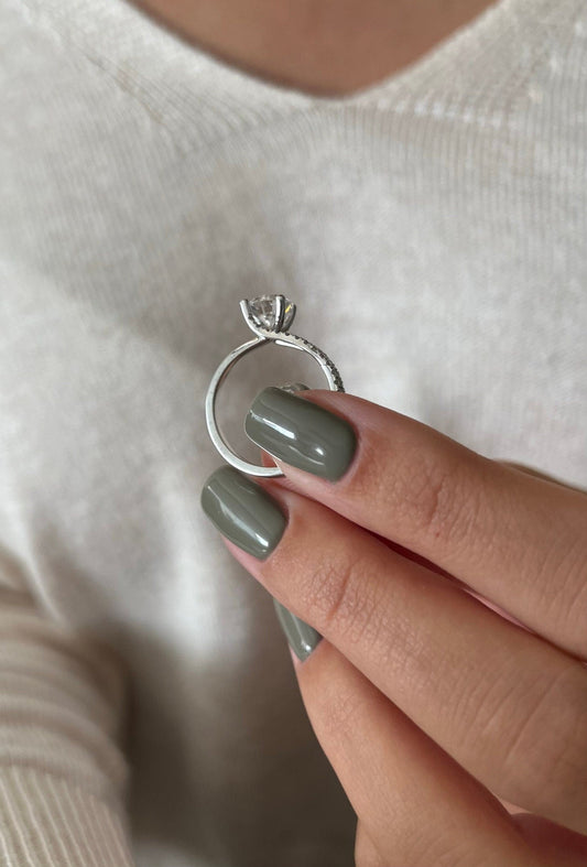0.1 CT Round Cut Solitaire Pave Moissanite Engagement Ring