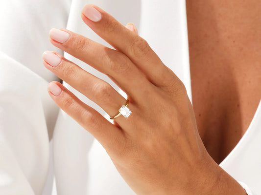 2.0CT Emerald Cut Solitaire Moissanite Engagement Ring