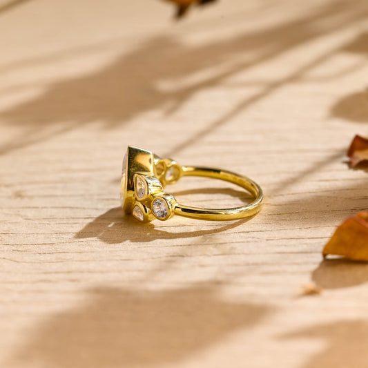 2.0CT Pear Cut Cluster Diamond Bezel Moissanite Engagement Ring
