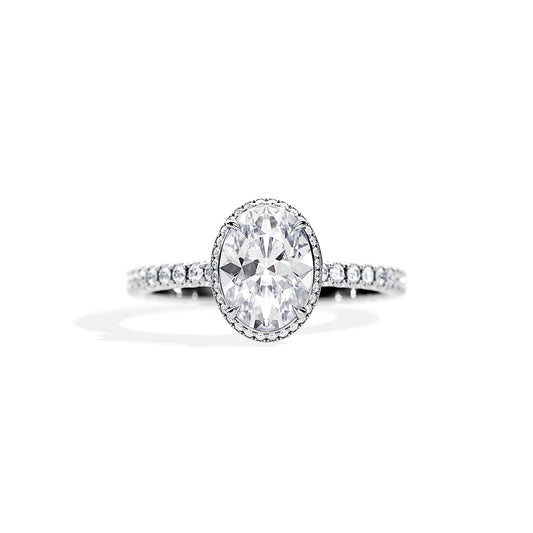 2.10 CT Hidden Halo Oval Cut Moissanite Pave Engagement Ring