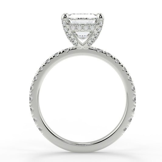 2.52 CT Emerald Shaped Moissanite Hidden Halo Style Engagement Ring
