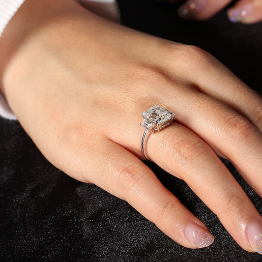 3.0 CT Emerald Moissanite Three Stone Engagement Ring