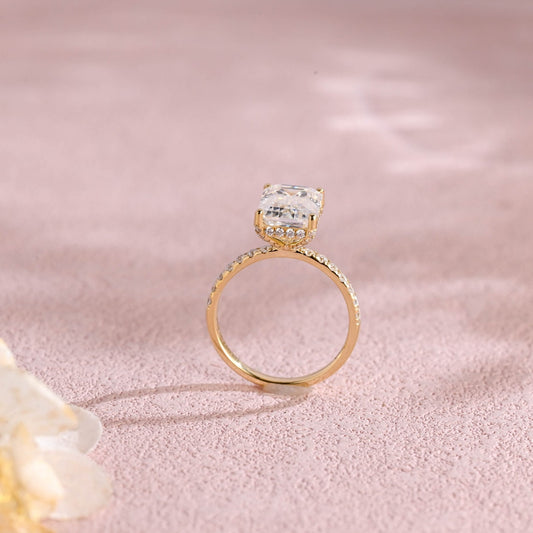 3.0 CT Emerald Moissanite Hidden Halo Engagement Ring