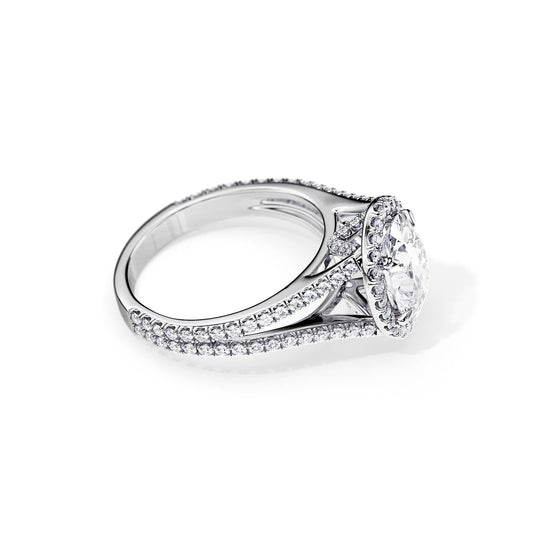 3.0 CT Oval Cut Moissanite Halo Split Shank Pave Engagement Ring