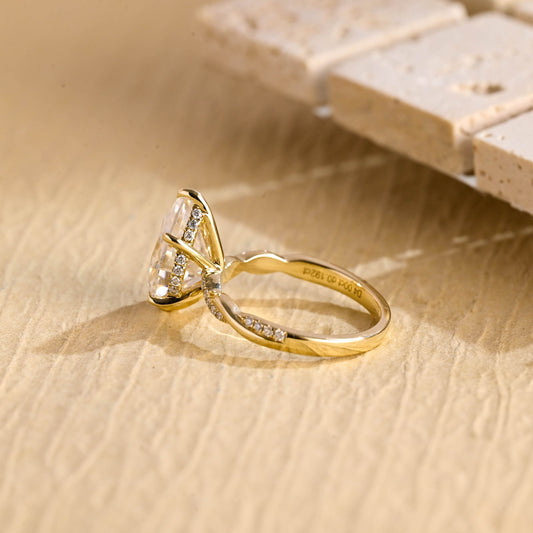 3.0CT Pear Cut Hidden Halo Moissanite Diamond Engagement Ring