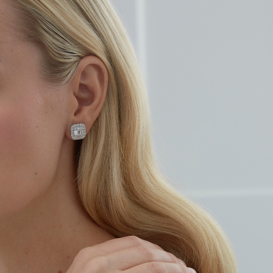 4.0 TCW Baguette & Round Moissanite Diamond Halo Earrings