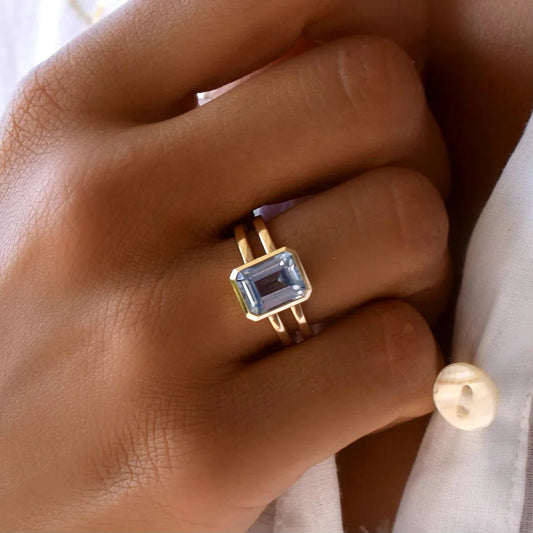 4.0CT Emerald Solitaire Aquamarine Moissanite March Birthstone Engagement Ring