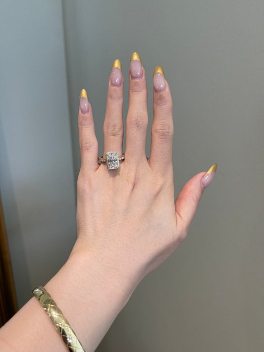 4.0CT Emerald Cut Hidden Halo Engagement Ring - Ready to Ship
