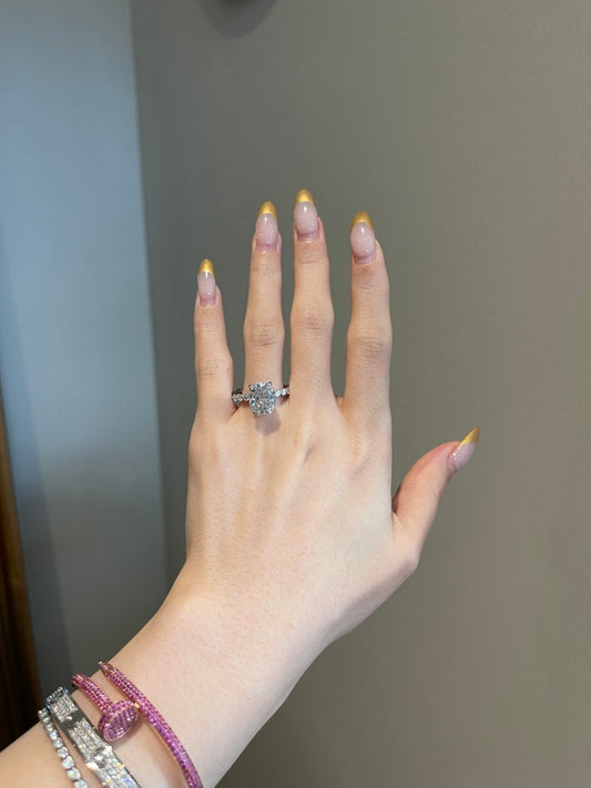 5CT Elongated Cushion Cut Hidden Halo Moissanite Diamond Engagement Ring