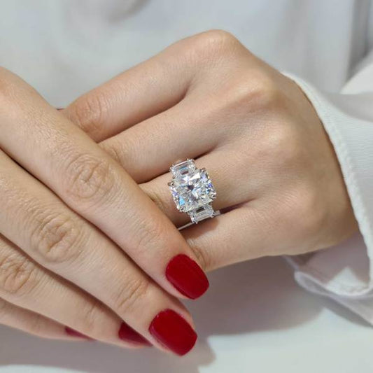 7.2 CT Emerald Cut Three Stone Moissanite Engagement Ring