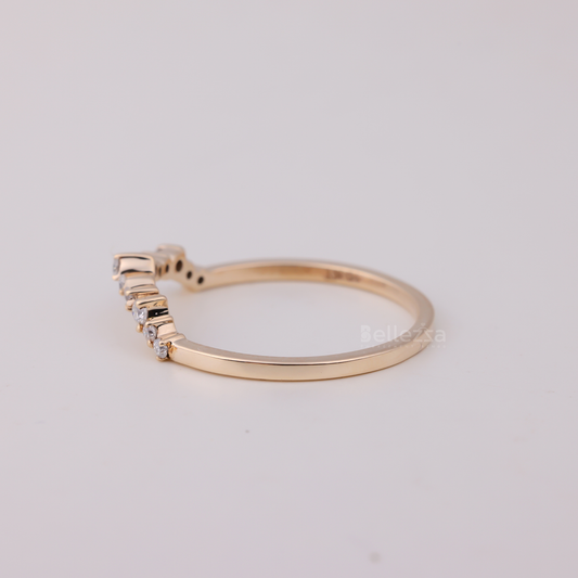 Round Brilliant Cut Curved Vintage Style Bridal Wedding Band