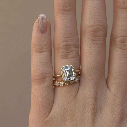0.50 CT Emerald Cut Moissanite Bezel setting Engagement Ring