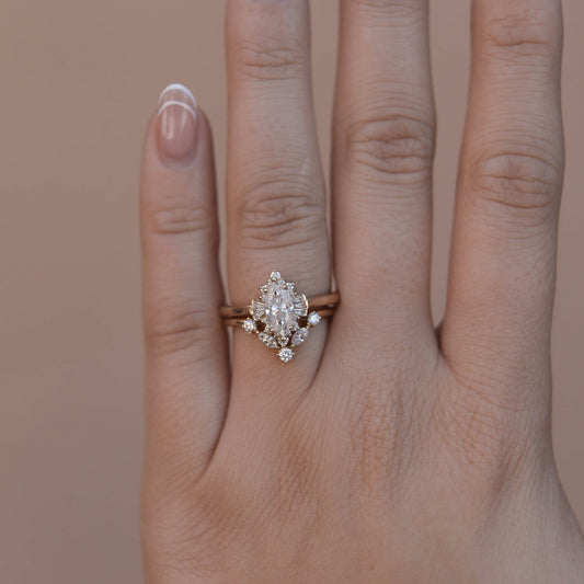 0.75CT Marquise Moissanite Cluster Diamond Wedding Ring Set