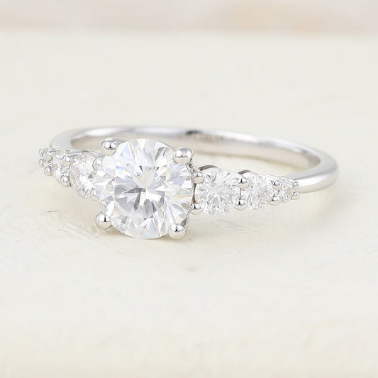 0.88 CT Round Shaped Moissanite Seven Stone Engagement Ring