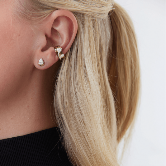 0.12 TCW Round Moissanite Diamond Thick Ear Cuff Earrings
