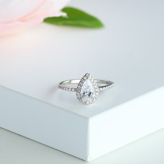 1.0 CT Pear Diamond Halo Diamond Moissanite Engagement Ring