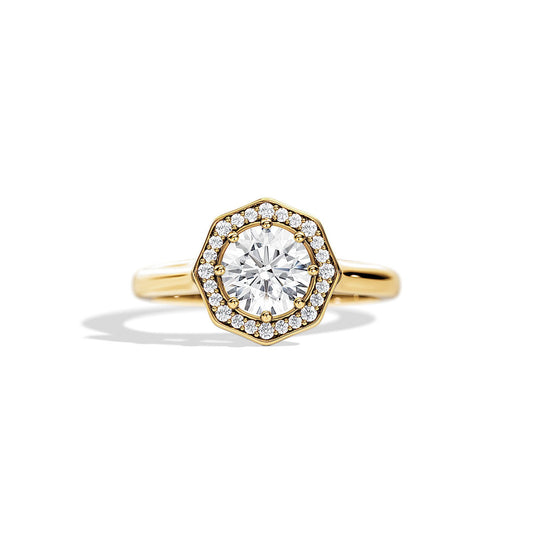 1.0 CT Round Cut Halo Moissanite Engagement Ring