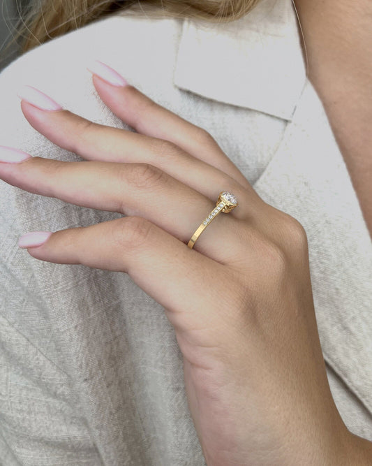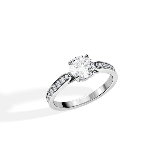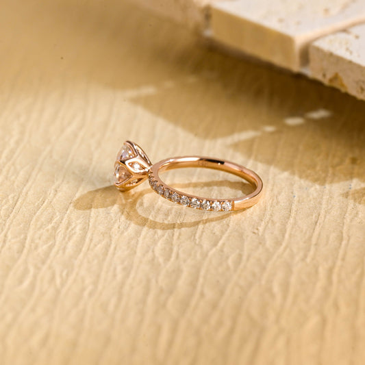 1.0 CT Round Cut Moissanite Pave Shank Engagement Ring