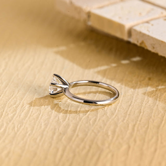 1.0 CT Round Cut Moissanite Six Prong Diamond Engagement Ring