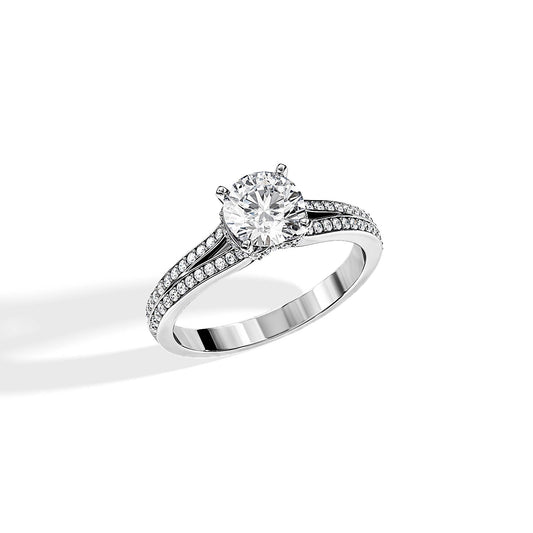 1.0 CT Round Cut Moissanite Split Pave Engagement Ring