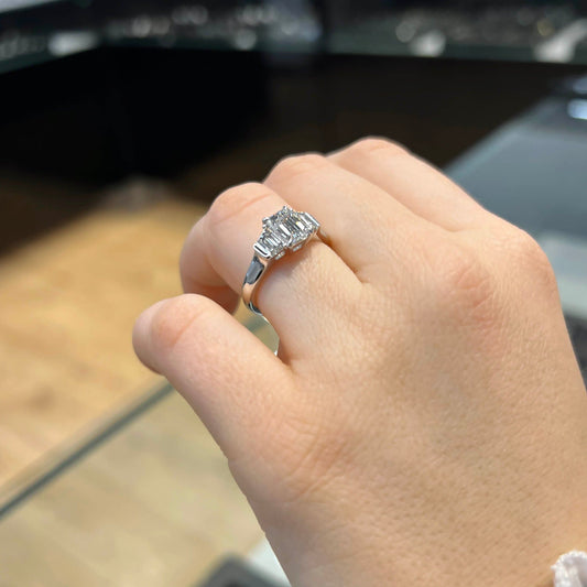 1.05 CT Emerald Moissanite Three Stone Engagement Ring
