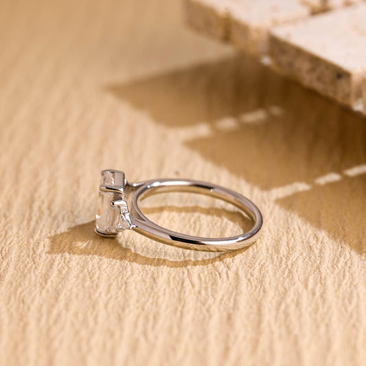 1.0CT East West Emerald Cut Three Stone Moissanite Engagement Ring