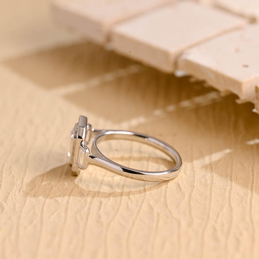 1.0CT Emerald Diamond Cluster Setting Moissanite Engagement Ring