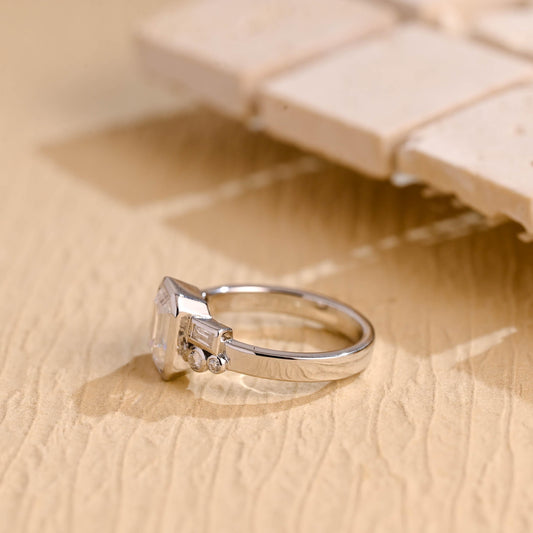 1.0CT Emerald Cut Cluster Moissanite Engagement Ring - Ready to ship