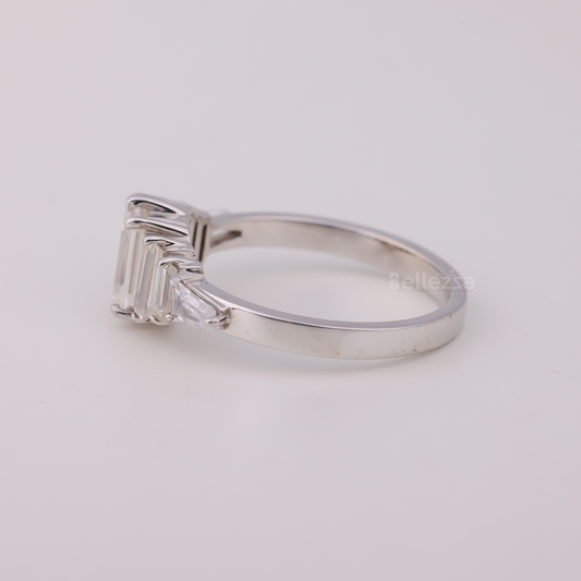 1.0CT Emerald Cut Cluster Diamond Moissanite Engagement Ring