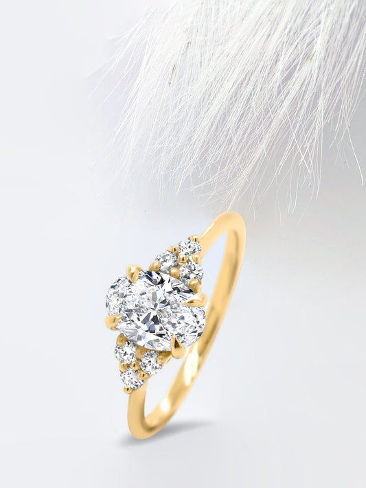 1.0CT Oval Cut Cluster Moissanite Engagement Ring - Ready to Ship