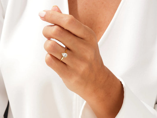 1.0CT Oval Diamond Bezel Setting Solitaire Moissanite Engagement Ring