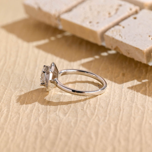 1.0CT Round Brilliant Cluster Diamond Moissanite Engagement Ring