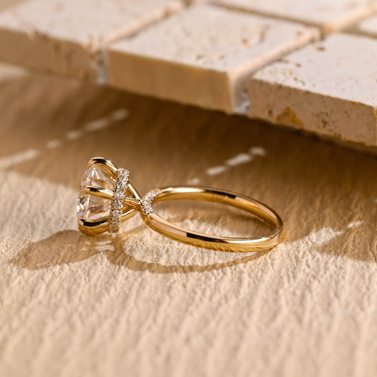 1.0CT Round Brilliant Hidden Halo Moissanite Engagement Ring