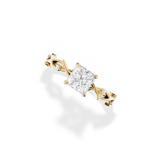 1.20 CT Princess Cut Moissanite Twig setting Engagement Ring