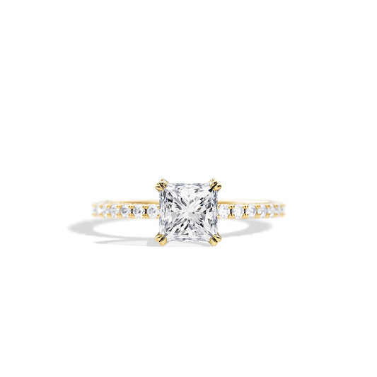 1.20 CT Princess Cut Moissanite Hidden Halo & Pave Engagement Ring