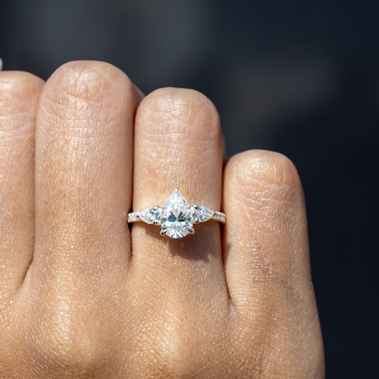 1.20 CT Pear Shaped Moissanite Cluster Style Engagement Ring
