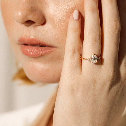 1.33 CT Pear Moissanite Cluster Engagement Ring
