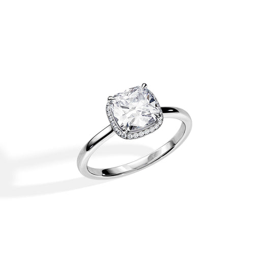 1.50 ct Cushion cut Hidden halo Moissanite Engagement Ring