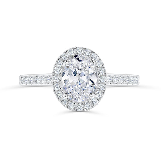 1.50 CT Oval Moissanite Halo & Pave Engagement Ring