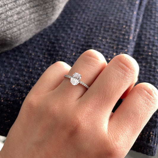 1.50 CT Oval Moissanite Hidden Halo Engagement Ring