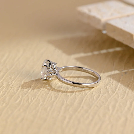 1.50 CT Oval Cut Halo Cluster Moissanite Engagement Ring