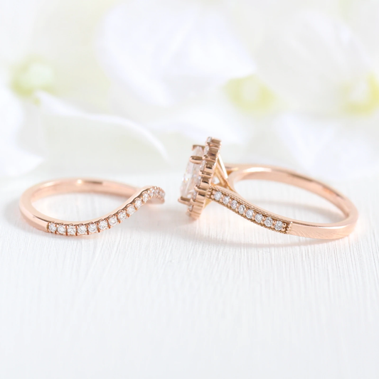 1.50ct Oval Cut Moissanite Halo Engagement Ring With Curved Wedding Band