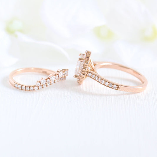 1.5ct Oval Cut Moissanite Halo Engagement Ring With Crown Wedding Band