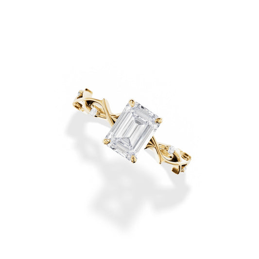 1.75 CT Emerald Cut Moissanite Twig Style Engagement Ring