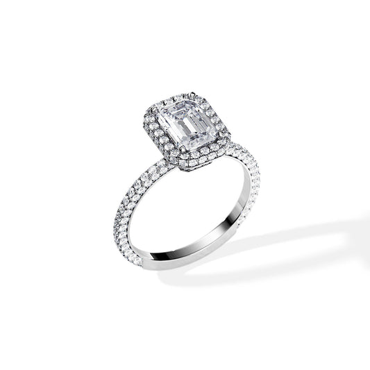 1.75 CT Emerald Cut Halo & Pave Moissanite Engagement Ring