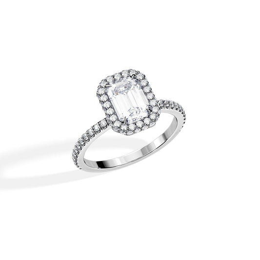 1.75 CT Emerald Shaped Moissanite Halo Style Engagement Ring