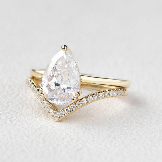 1.80CT Pear Solitaire Moissanite Engagement Ring with Curved Wedding Band